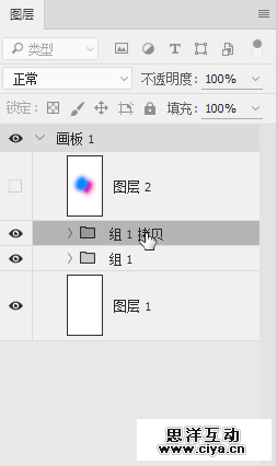 渐变颜色图层绘制好后,在图层与编组之间按住【Alt】键进行图层与编制之间的嵌套,让渐变的颜色嵌套到下面的编组上。从而完成以下的效果。