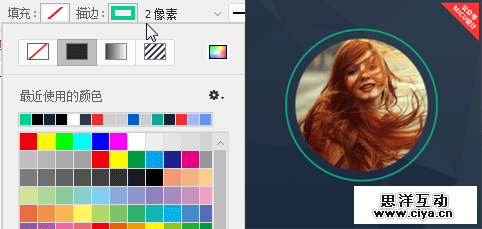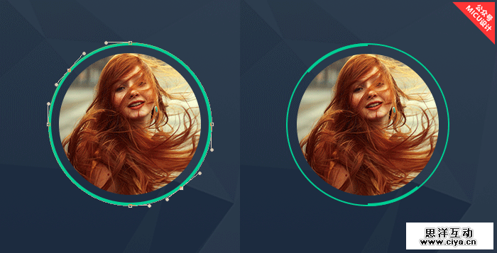 Alt键拖动复制圆形的路径层,【Ctrl+T】调整一下圆形的大小。将路径形状的填充关闭,描边设置为2px,颜色为绿色。