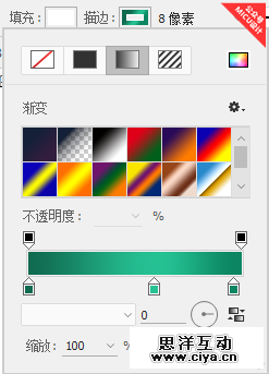 为了让曲线变得更为自然,选择描边的渐变模式,将描边调整到为深绿到绿色再到深绿的过度效果。度数设置为0°。
