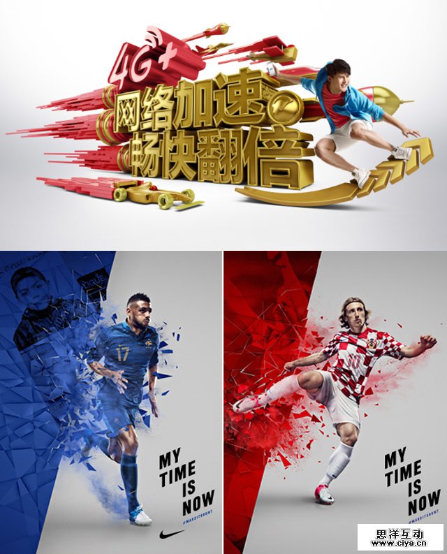 运动着的东西总是比静的东西更吸引人的注意,其实对于动物来说也是如此,例如蛇、青蛙等动物只能注意到会动的东西,静止的东西会直接被忽视。对于视频来说运动当然不是问题,但是平面设计是无法动起来的,不过真正的运动和动感是两回事,虽然动不了,但我们仍然可以通过一些小技巧制造动感,例如:把物体掷在空中、把多个物体按一定的运动轨迹摆放、加入一个正在运动的人或者动物,又或者利用视觉矛盾制造动感,都可以让平面的设计“动起来”。