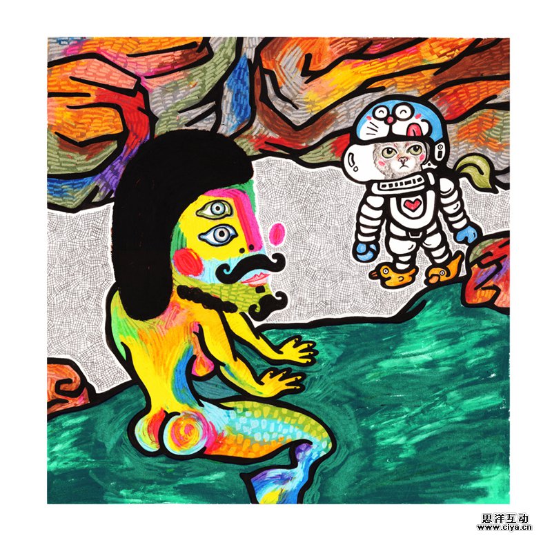 《卷入宇宙的morning和忧虑》 45*40cm 纸面综合材料