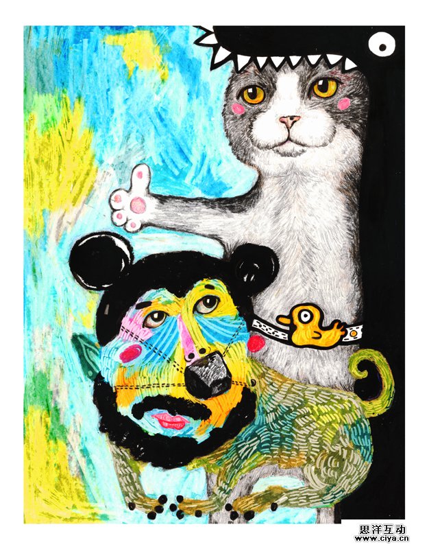 《猫娜丽莎》 36*28cm 纸面综合材料