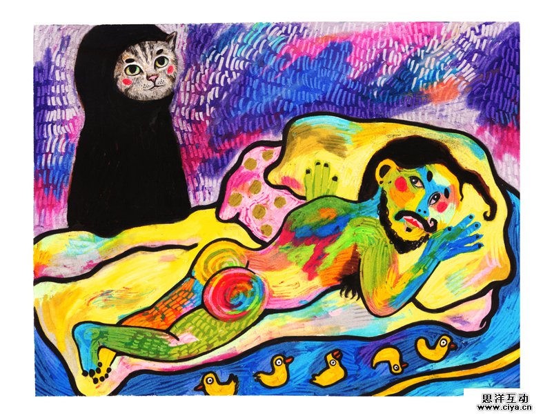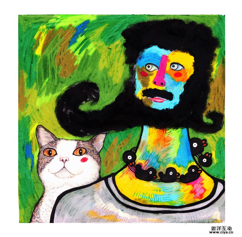 《morning与猫自画像》 36*36cm 纸面综合材料