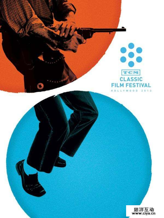 从电影主题谈到电影节海报,下图设计中的透明圆圈,为背景添加一抹亮色。同时,用同样的形状配上不同的颜色,突出显示了两个对立图像之间的差异。