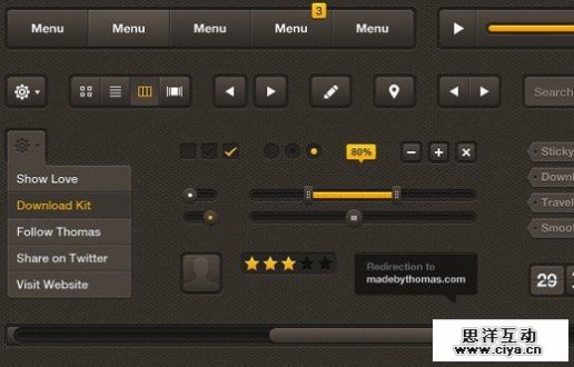 这里有完整的布局的,可编辑的PS web元素,特意为投票系统和评级系统。每一个都支持缩放。 Simple UI Kit 这个简单套件包括radio按钮,checkbox,搜索框,普通和圆形按钮,开和关的GUI开关