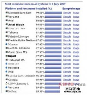 CSS 字体库(CSS Font Stacks) 虽然在安全字体的选择受到了限制,你不必仅仅使用那些样式表里的字体。使用CSS 字体库里的字体,它是一个按优先顺序排列的CSS 所钟爱的字体的列表,你可
