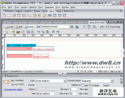 Dreamweaver CS3集成Spry之表单检测