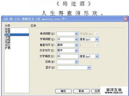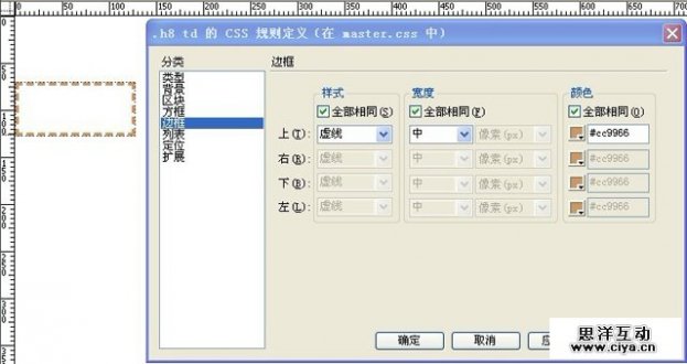 发布于:12-02-24 | 作者:广州网站建设使用【CSS规则定义】对话框的【方框】选项卡可以为用于控制元素在页面上的放置方式的标记和属性定义设置。可以在应用填充和边距设置时将设置时将设置应用于元素的各个边,也可
